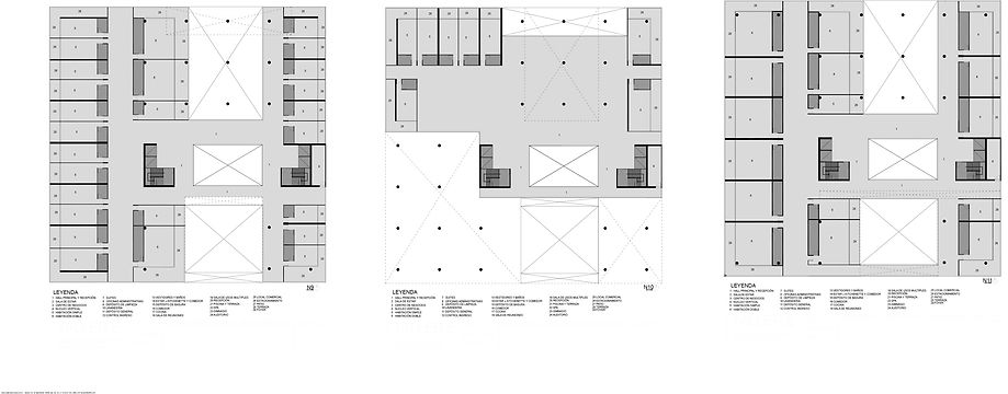 En la propuesta se buscó emplazar el edificio en la topografía que se enfrenta frente a la vía expresa, sin dejar el espacio público de lado, con la finalidad de que la propuesta esté activa tanto de noche como de día, es por eso que en los primeros niveles del Hotel se decidió colocar comercio y zona cultural que permitiera activar la zona, al subir los niveles se cuenta con una planta de espacio público que rompe el edificio en dos, generando una zona pública y privada en la zona superior con los dormitorios.